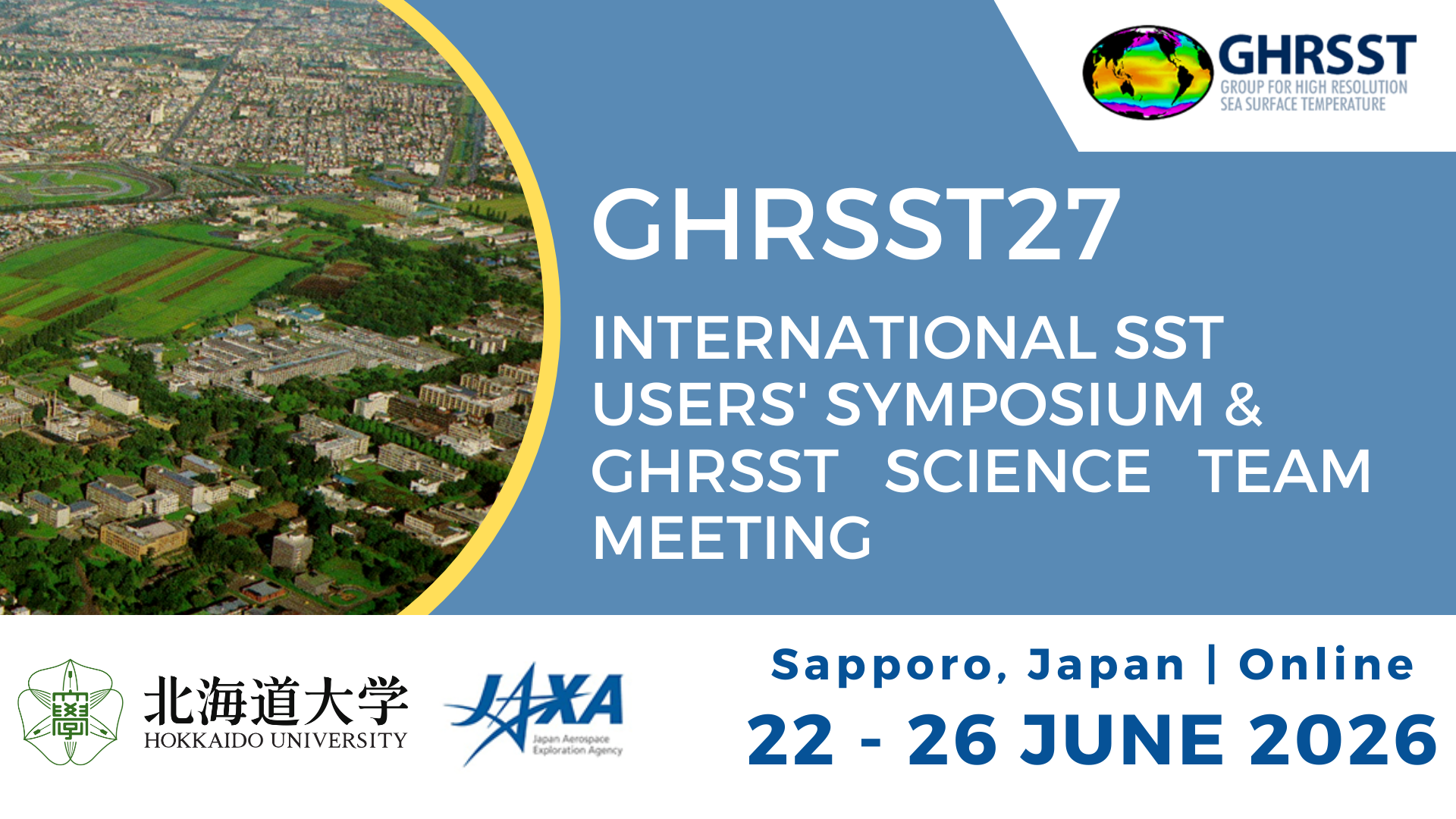GHRSST27 will be hosted by JAXA and Hokkaido University and will take place from 22 – 26 June 2026.