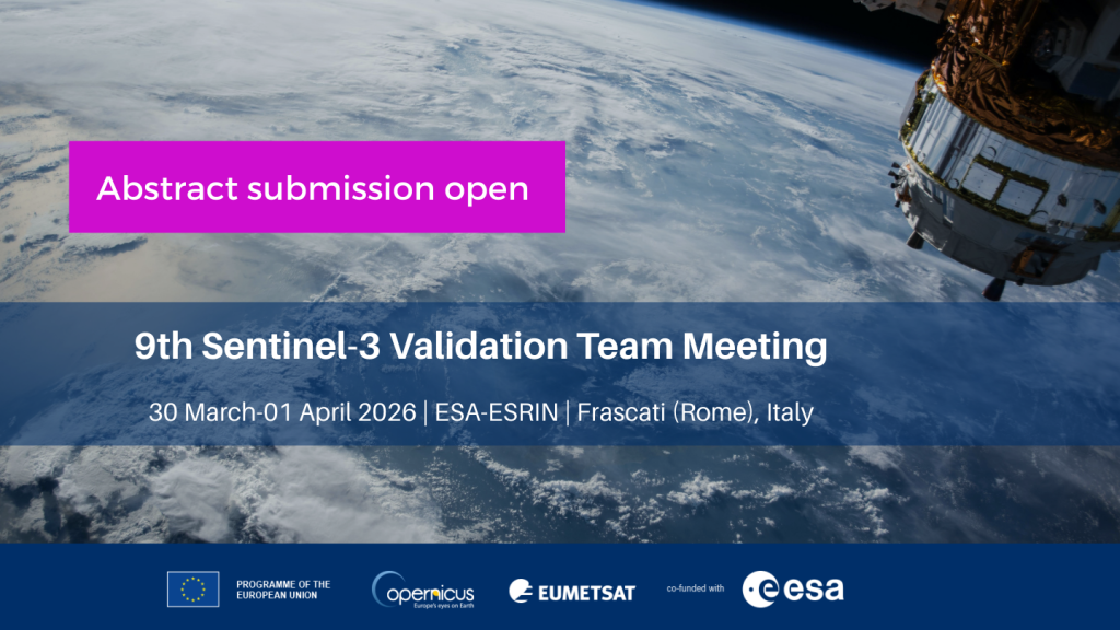 9th Sentinel-3 Validation Team (S3VT) Meeting 2026: abstract submission open until 31 December 2025